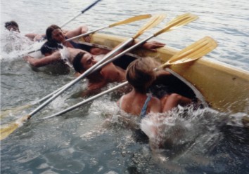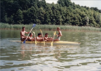 Czasami, gdy nie można się było doczekać wywrotki i groziła nam nuda, sami wlewaliśmy wodę zza burty do wnętrza kajaka (Wda 2000 - pojedynek M. Kaczmarek i H. Ludwisiak kontra W. Konieczny z wujkiem), albo też dokonywaliśmy kontrolowanego przeciążania pięcioosobową załogą (Obra 1997).