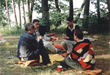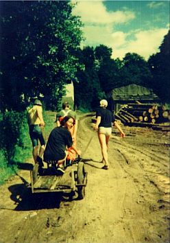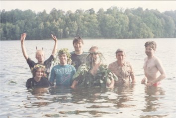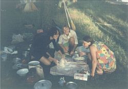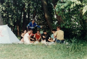Jak dotąd uczestnicy spływów mieli zbieżne pojęcie na temat spędzania wolnego czasu na łonie przyrody, w miarę możliwości daleko od wakacyjnych tłumów i głośnej rozrywki wzmacnianej alkoholem. Nasuwają się skojarzenia z grzecznym harcerstwem, ale weźmy choćby strój. Któryż szanujący się skaut paraduje w wilgotnych szmatach i tenisówkach!? My bez skrępowania pozwalaliśmy sobie na taką nieprzyzwoitość nawet w miejscach publicznych. Nasze panie, rzecz jasna, zachowywały fason w najsurowszych warunkach.